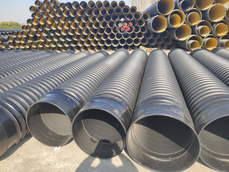 聚乙烯(HDPE)鋼帶增強螺旋波紋管是用連續鋼帶壓成近似^形的螺旋鋼肋纏繞在內外兩層熱熔接的聚乙烯間,把鋼材的高鋼度、高強度和聚乙烯的柔韌、耐腐、耐磨結合在一起。是我國近年開發出來的一-種新型塑料埋地排水管。